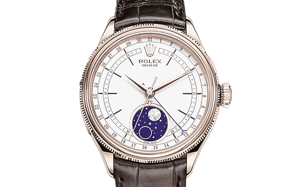 2017年に発表された本モデルの一番の特徴はフルオープンサイズのムーンフェイズです。